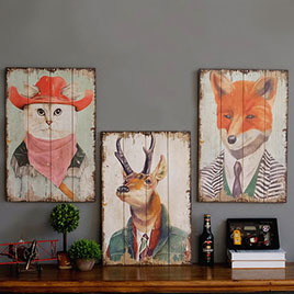 小城动物木板画壁挂北欧
